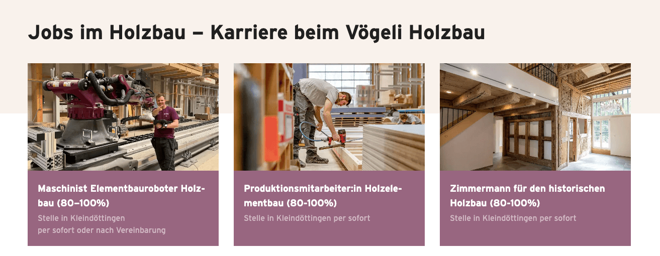 Vögeli Holzbau AG – Kampagnenoptimierung & Sparring für nachhaltiges Recruiting